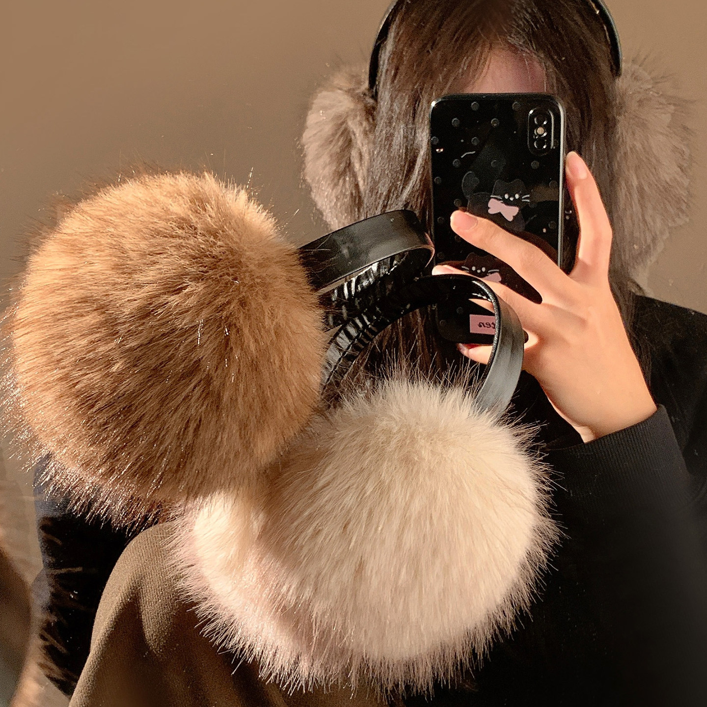 淘可爱真獭兔毛耳罩女冬季百搭保暖毛绒耳包骑车防风耳暖耳捂可伸缩