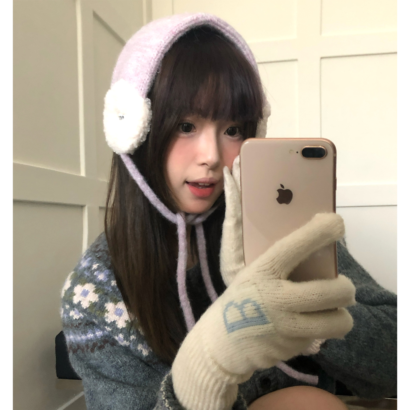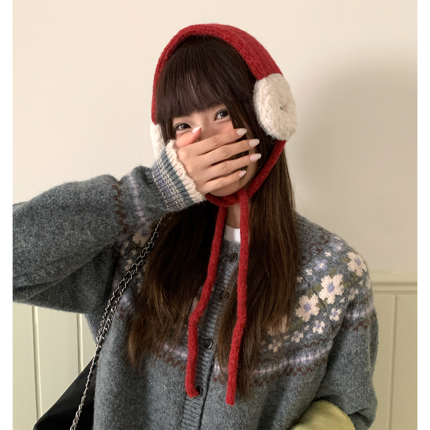巴恩风~陈奶奶复古系混色毛球耳罩护耳可爱韩版ins加厚防寒保暖女
