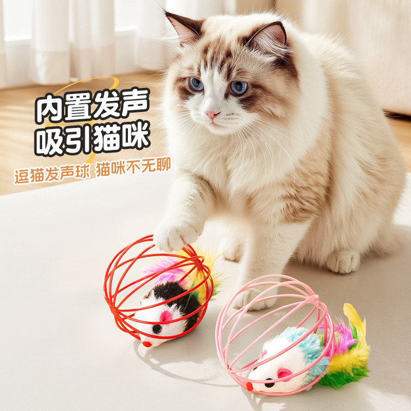 淘meowcard 冰淇淋棉棉球猫咪玩具发声铃铛老鼠新品套装