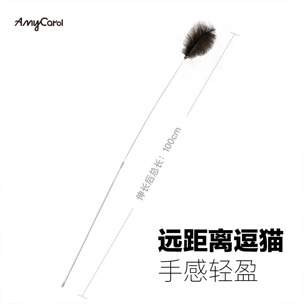 淘宝新款台湾Amy Carol长杆可伸缩鸵鸟毛羽毛亮片逗猫棒猫咪玩具