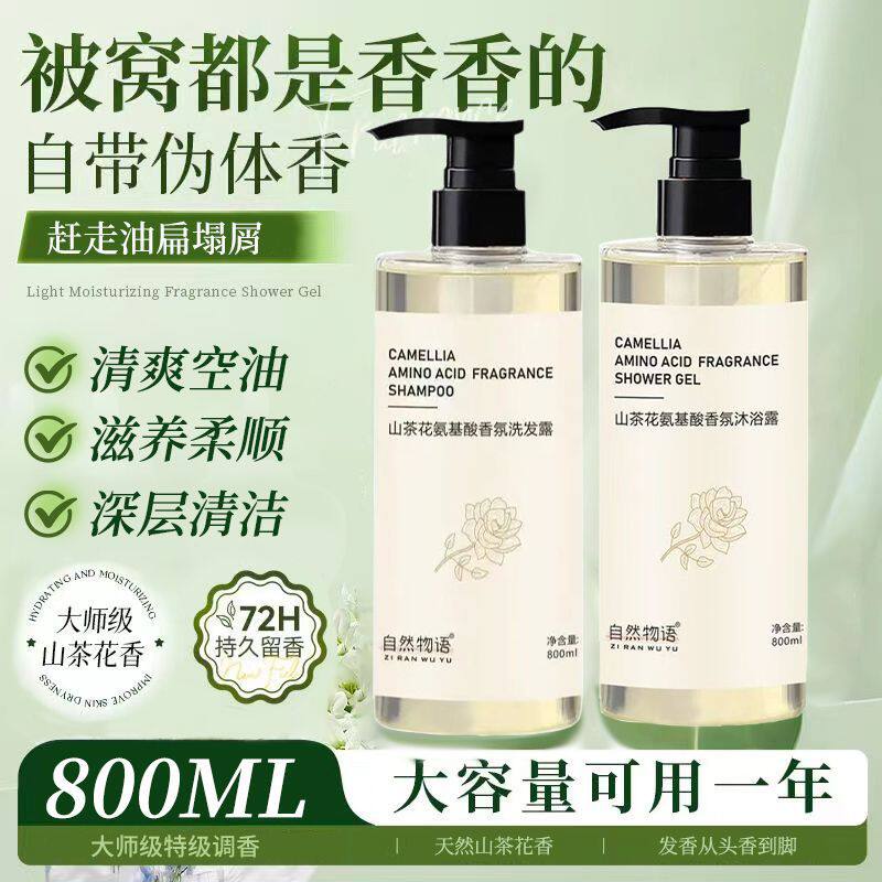 淘宝山茶花洗发水持久留香大容量控油去角质蓬松洗头膏沐浴露学生套装