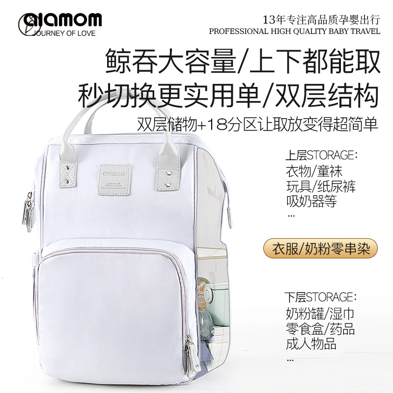 淘宝ALAMOM妈咪包背奶包2025新款大容量外出轻便双肩母婴包双层妈妈包