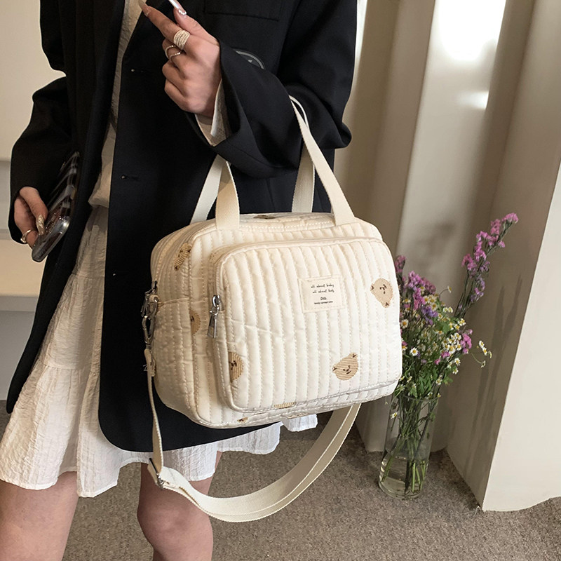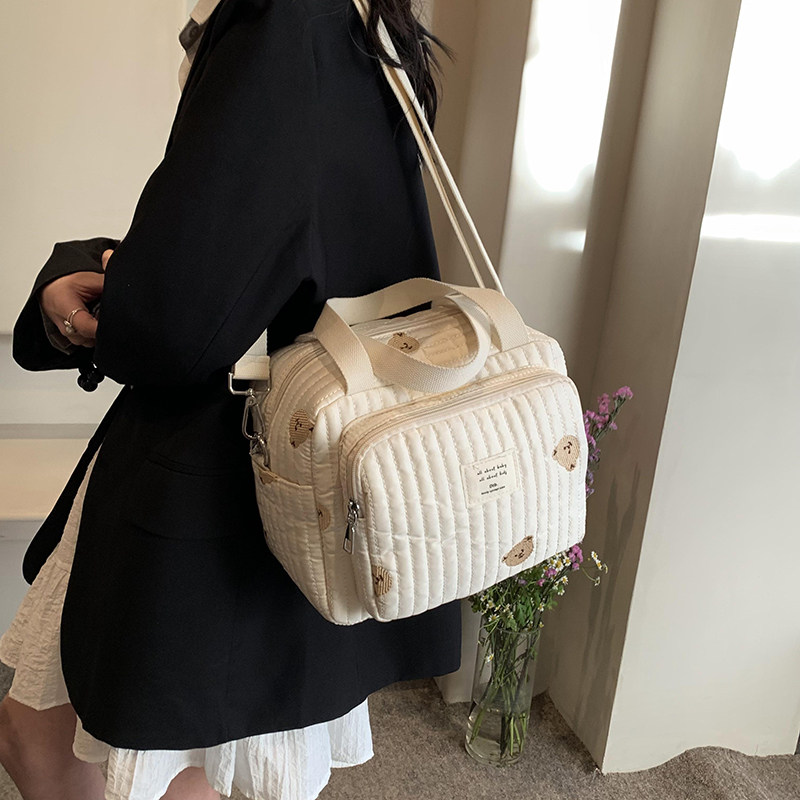 淘宝韩国ins小熊妈咪包时尚刺绣单肩包手提便当包轻便休闲外出旅行包