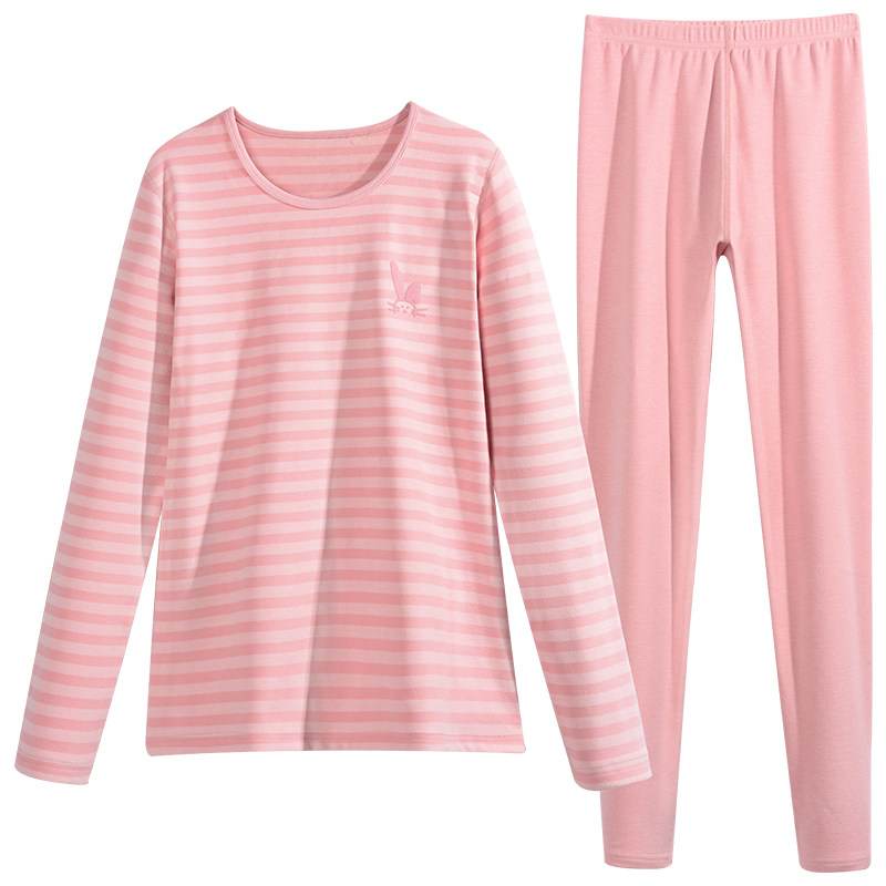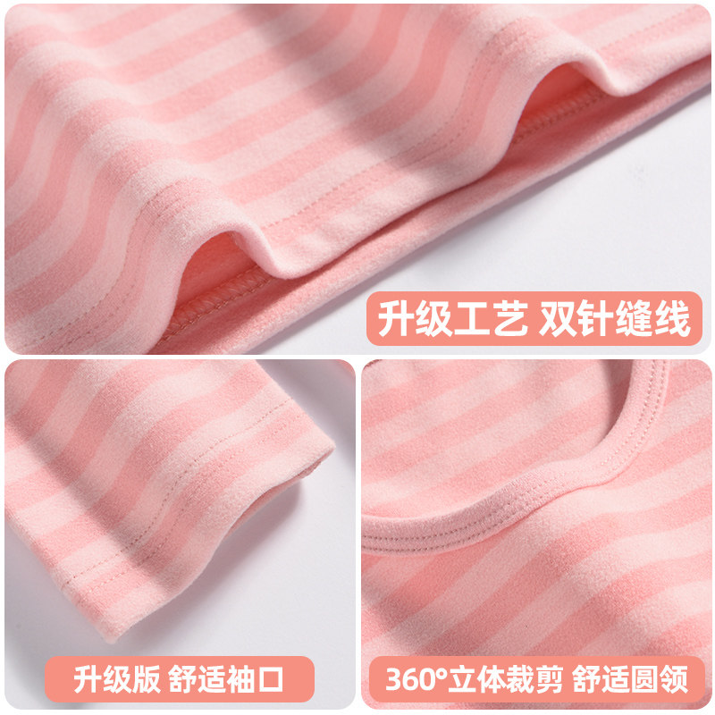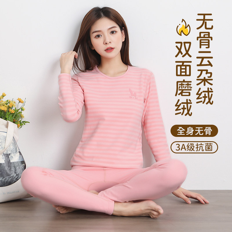 淘宝【断码清仓】抗菌纤维磨绒女士条纹秋衣秋裤学生圆领保暖内衣套装