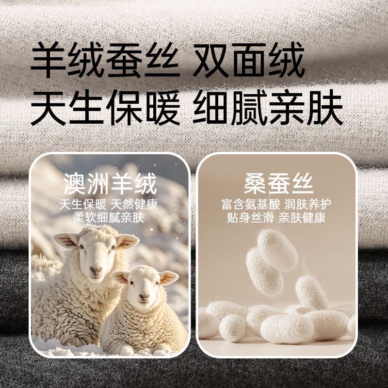 羊毛蚕丝7A抑菌保暖内衣套装女士秋冬季加绒加厚打底内穿秋衣秋裤