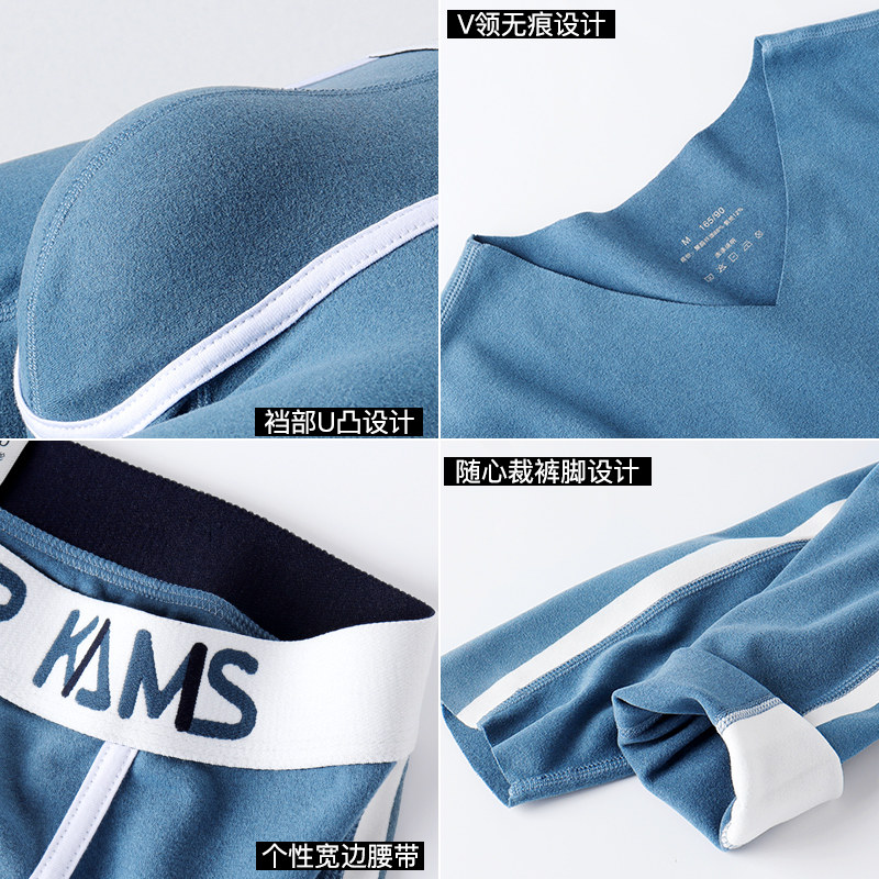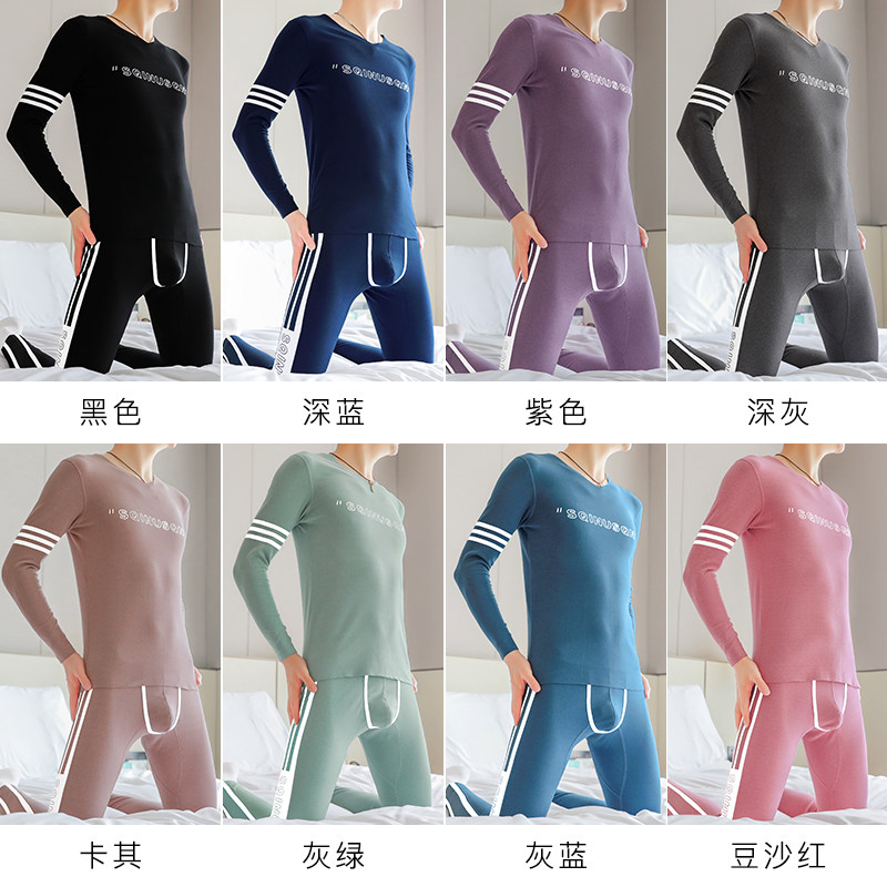 天猫秋衣秋裤男士V领棉毛衫打底裤青年薄款衬裤无痕保暖内衣套装秋冬