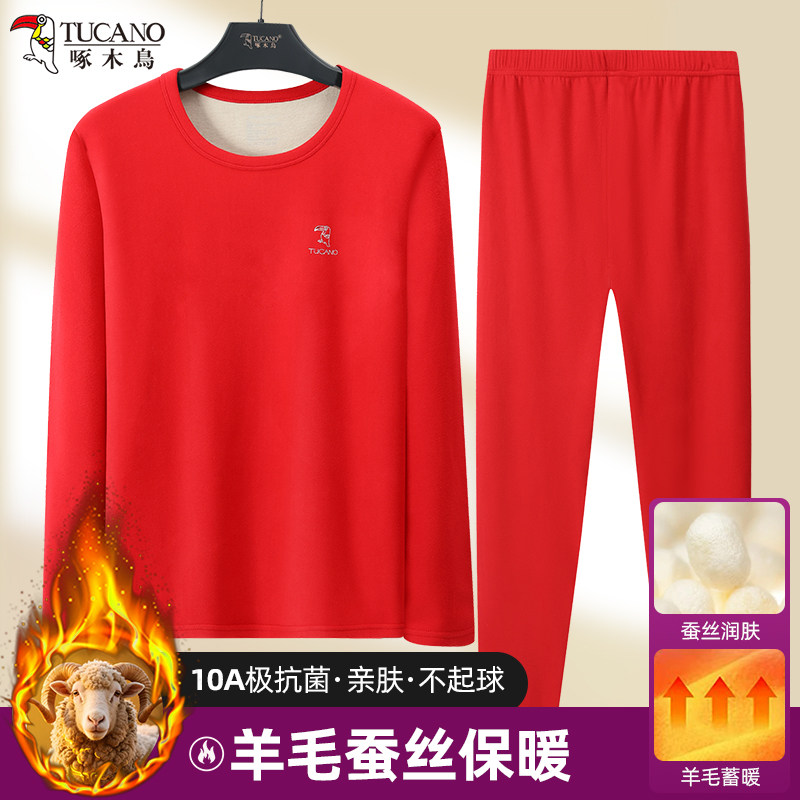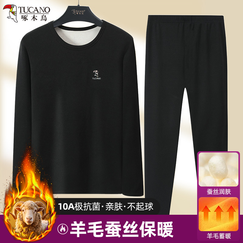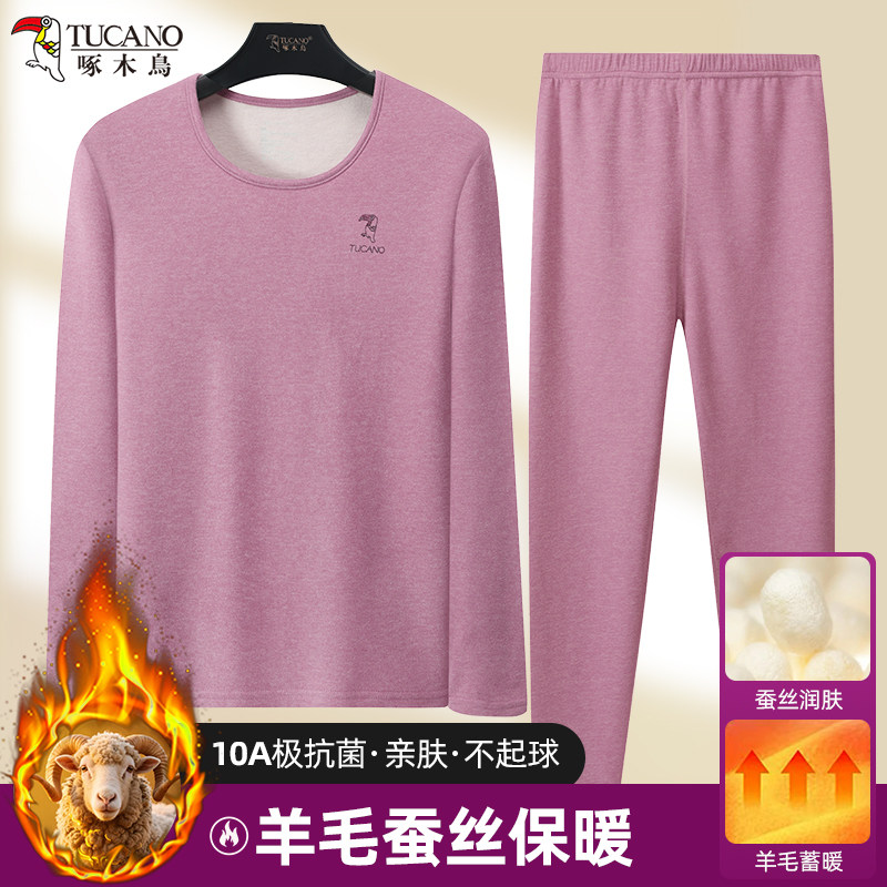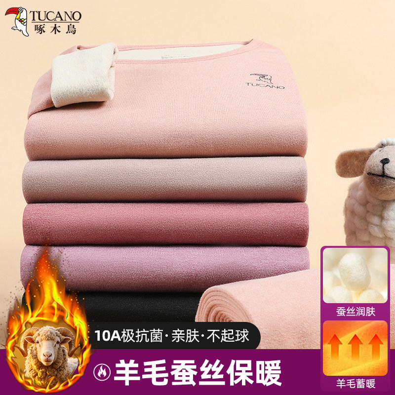 天猫啄木鸟10A抑菌女士保暖内衣套装圆领中年加绒加厚自发热秋衣秋裤