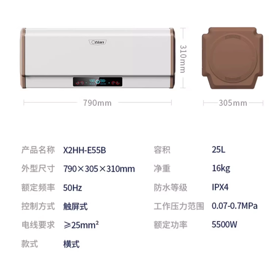 Otlan(奥特朗)X2DH二合一速热电热水器是一款专为现代家庭浴室设计的高效节能产品。采用先进的即热与储水双模技术,实现快速出热水,满足多人连续洗浴需求。机身小巧,安装便捷,适配多种户型。特别值得一提的是,该产品符合国家节能惠民政策,享受政府15%的购置补贴,大幅降低用户购买成本。配备智能温控系统,精准调节水温,使用安全舒适。多重安全防护设计,包括防电墙、防干烧、防超压等,保障全家洗浴安全。Otlan以高品质与贴心服务赢得消费者信赖,是提升家居生活品质的优选热水器。