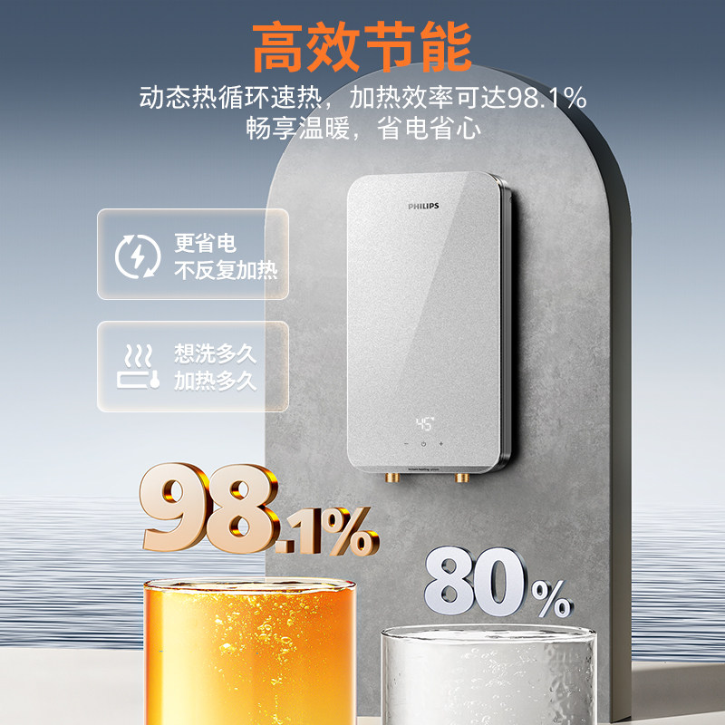 天猫飞利浦即热式电热水器洗澡家用卫生间速热式淋浴器变频恒温热水器