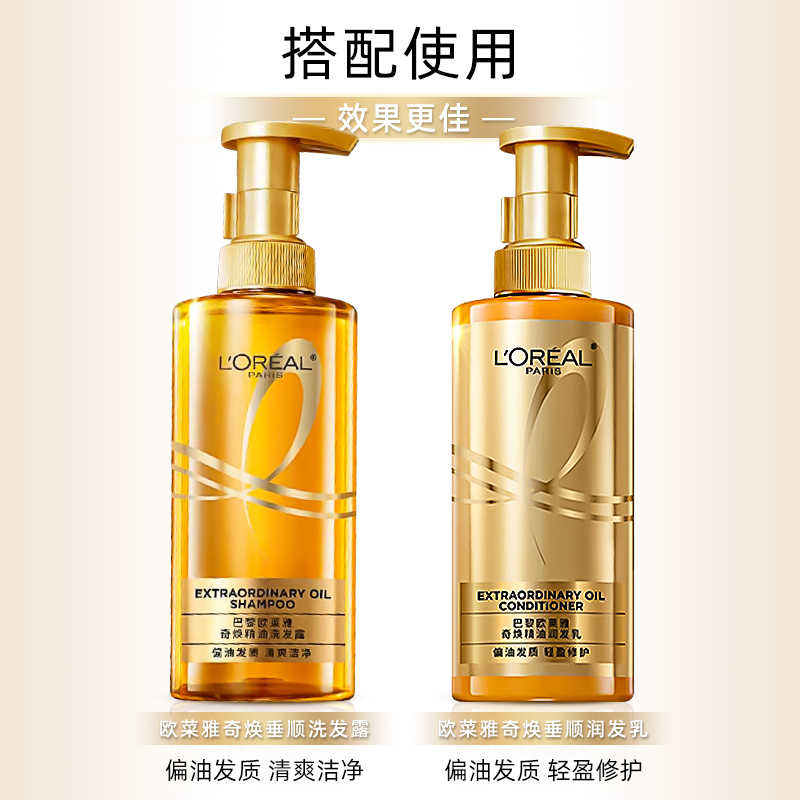 淘宝欧莱雅大金瓶洗发水奇焕垂顺精油护发素控油蓬松无硅油洗护套装