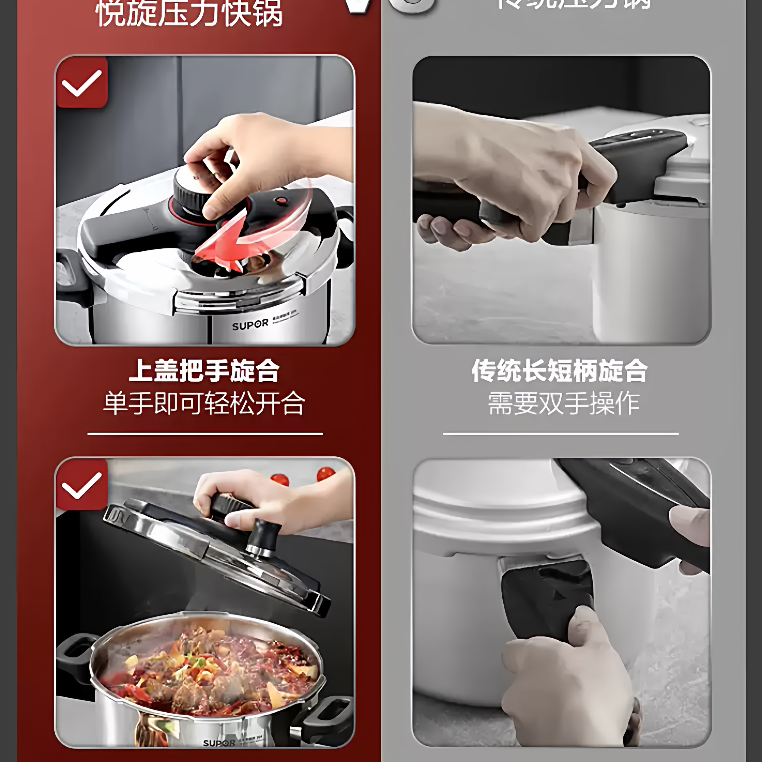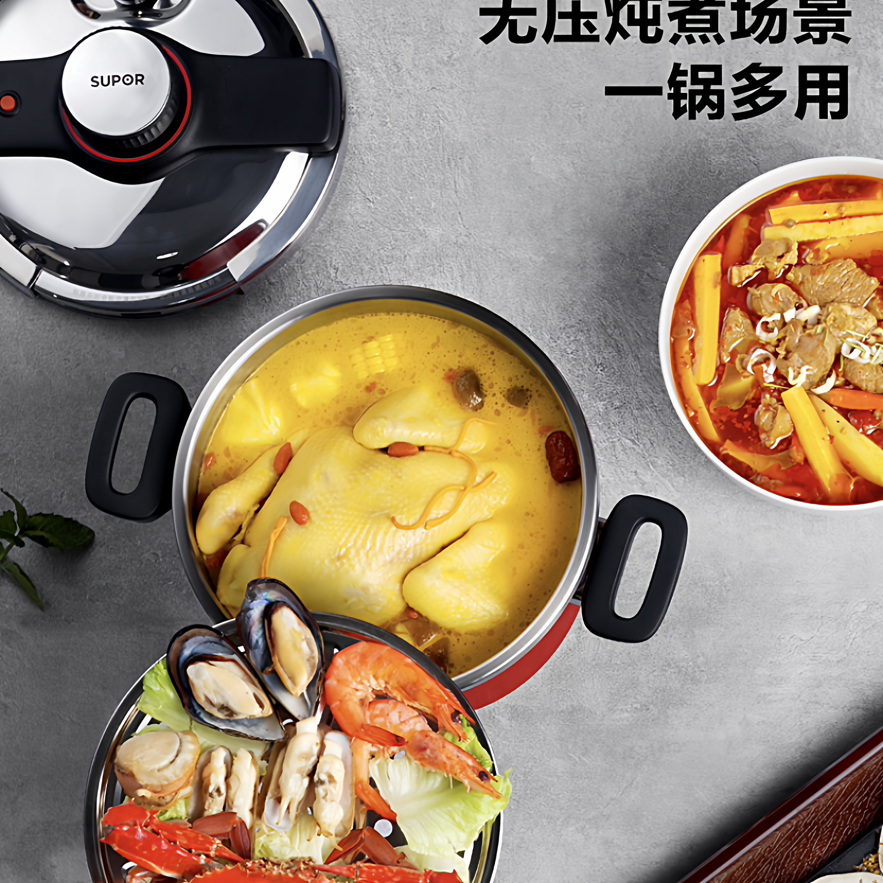2025款苏泊尔高压锅采用高品质316L医用级不锈钢材质,耐腐蚀、耐高温,安全健康,持久耐用。专为现代家庭设计,小巧容量适合2-4人使用,节省厨房空间。配备多重安全保护系统,包括限压阀、安全锁和防堵罩,使用更安心。锅体兼容明火与电磁炉,适配多种灶具,加热高效均匀。密封性能优异,锁住食材营养与鲜味,炖煮焖蒸样样精通,大幅缩短烹饪时间。人性化手柄设计,握感舒适,开合便捷。易清洁内胆,打理轻松。苏泊尔匠心打造,让美味与健康触手可及,是家庭厨房的理想之选。