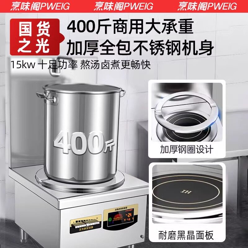 淘宝商用电磁炉8000W大功率饭店用熬汤卤肉菜矮脚汤炉12KW/15KW电磁灶