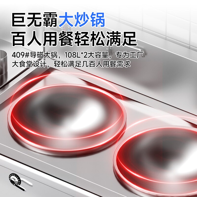 驰能商用电磁炉大锅灶双头灶,专为食堂、餐厅等商用场景设计,配备30KW大功率输出,加热迅速、火力强劲,轻松满足大批量炒制需求。双灶头设计提升烹饪效率,可同时进行不同菜品加工,节省时间与人力。采用优质不锈钢材质,坚固耐用,易清洁维护,符合食品安全标准。精准温控系统确保火候稳定,炒料均匀,保留食材原汁原味。电磁加热方式安全节能,无明火、低噪音,环保高效。适用于学校、工厂、酒店等集中用餐场所,是现代化厨房的理想之选,兼顾性能、安全与实用性。