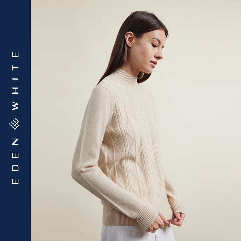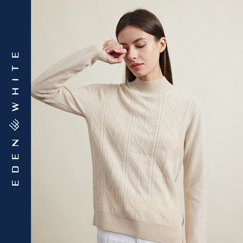 圣雪绒2022秋冬新款女半高领纯色羊绒衫,以经典复古绞花纹理为设计亮点,融合轻熟优雅气质,打造温暖又时尚的秋冬穿搭。精选优质羊绒材质,触感柔软细腻,亲肤保暖,穿着舒适自在。半高领设计修饰颈部线条,兼顾保暖与优雅;简约纯色基调百搭实穿,轻松搭配大衣、半裙或裤装。绞花针织工艺立体精致,彰显匠心品质,既复古又现代,适合通勤、约会等多种场合。整体版型修身不紧身,凸显女性柔美曲线,是秋冬衣橱不可或缺的质感单品,展现低调奢华的轻熟魅力。