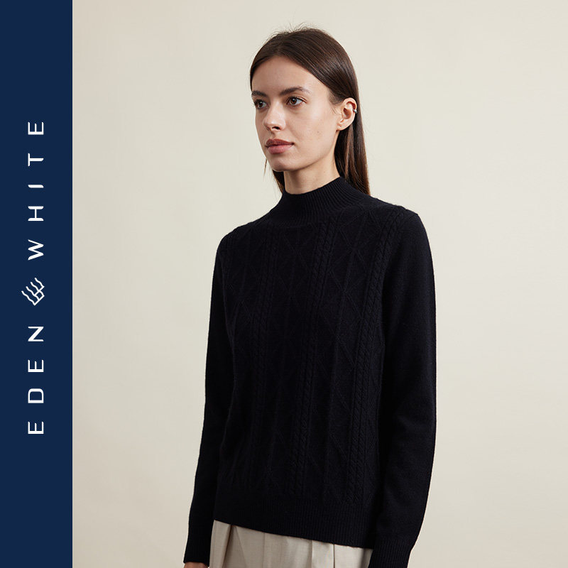 天猫圣雪绒22秋冬新款女半高领纯色羊绒衫复古绞花轻熟风套头针织衫