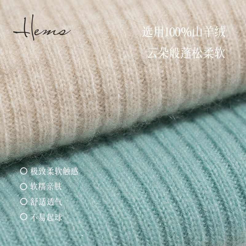 天猫海尔曼斯春季新款100%山羊绒撞色云感可叠穿打底针织衫女D1986D41