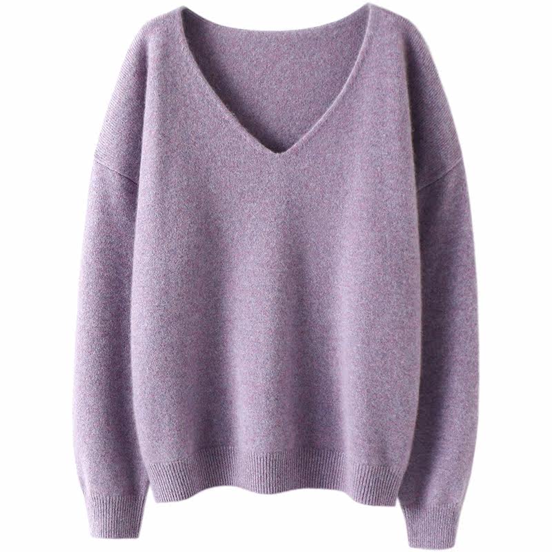 天猫官方正品!加厚V领羊绒衫女纯羊绒毛衣针织打底衫宽松【启超】