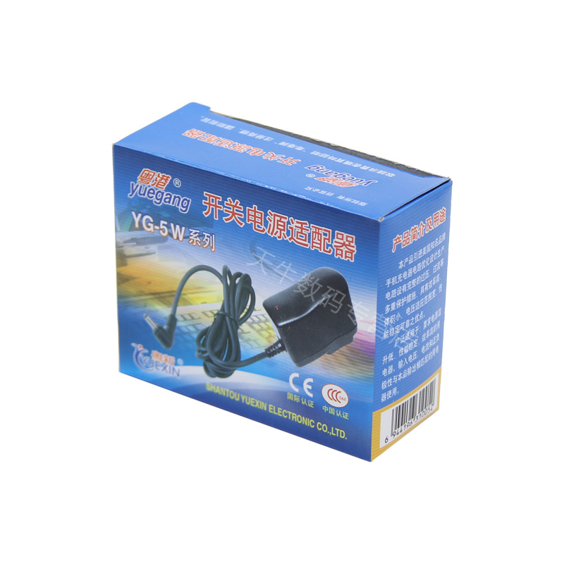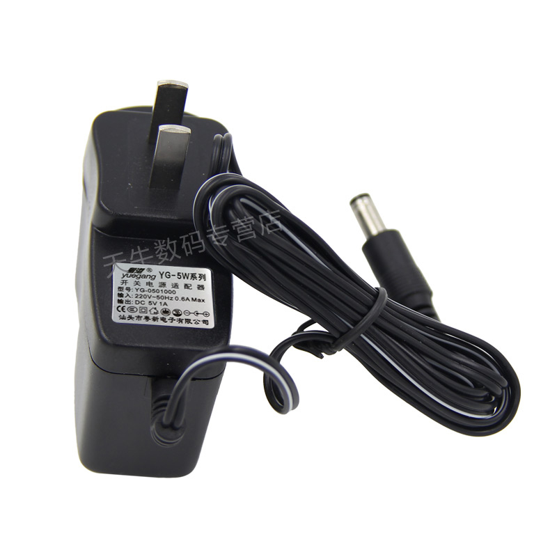 粤港5V1A开关电源适配器是一款通用型直流电源适配器,输出电压5V,输出电流1000mA(1A),兼容5V0.5A及以下设备,广泛适用于路由器、音响、水平仪、考勤机、网络机顶盒、小风扇等多种低功耗电子产品。采用标准5.5mm外径插头,接口通用性强,安全稳定,具备过压、过流、短路保护功能。外壳采用阻燃材料,散热良好,使用寿命长。产品通过多项安全认证,适合家庭、办公及工业环境使用。无论是替换损坏电源还是备用供电,粤港5V1A适配器都能提供稳定可靠的电力支持,是日常电子设备供电的理想选择。
