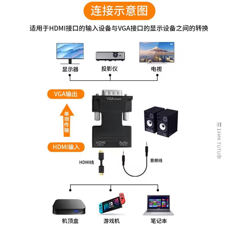 淘宝镀金hdmi/vga/hdmi转换头网络机顶盒电脑显示器电视笔记本带音频