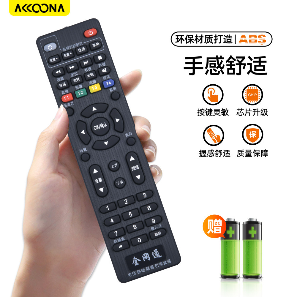 通用机顶盒遥控器全网通款,兼容中国移动、电信、联通及华为、中兴、天翼等品牌网络电视盒子,真正实现一器多用。采用先进红外编码技术,支持多种协议,无需复杂设置,即插即用,操作简便。按键布局合理,手感舒适,响应灵敏,有效距离可达8米以上。轻巧便携设计,适合家庭、酒店、办公等多种场景使用。无论是更换旧遥控器还是备用需求,这款通用遥控器都能完美匹配主流机顶盒型号,省去频繁适配烦恼,是提升智能电视使用体验的实用之选。品质可靠,性价比高,让您轻松掌控精彩视听生活。
