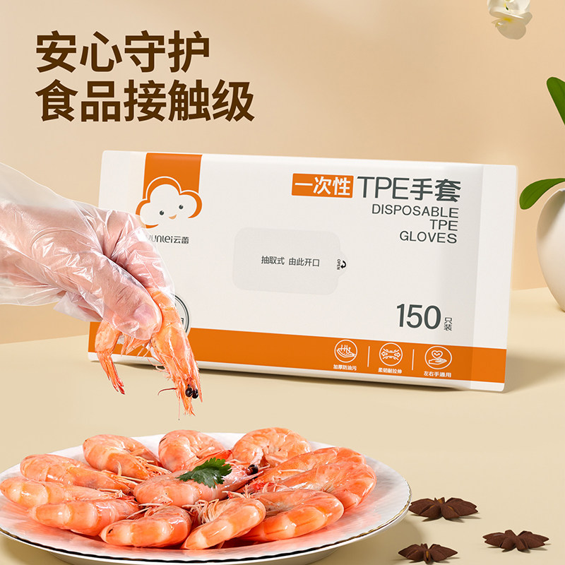 天猫云蕾一次性TPE手套翻盖抽取食品级耐用厨房家务清洁手套150只装