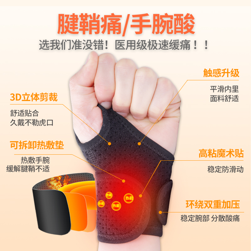 医用腱鞘炎护腕专为缓解手腕疼痛、劳损、扭伤及腕管综合征设计,适合长期使用电脑、手机或从事重复性手部动作的人群。采用高弹透气面料,贴合手腕曲线,提供稳定支撑,有效减轻肌腱负担。内置自发热材质,可促进局部血液循环,缓解僵硬与酸痛。适用于鼠标手、腱鞘炎、腕部劳损等常见问题,男女通用,女款设计更贴合纤细手腕。佩戴舒适,不影响日常活动,是办公室、居家及康复期的理想护具。坚持使用有助于预防损伤加重,加速恢复,守护手腕健康。