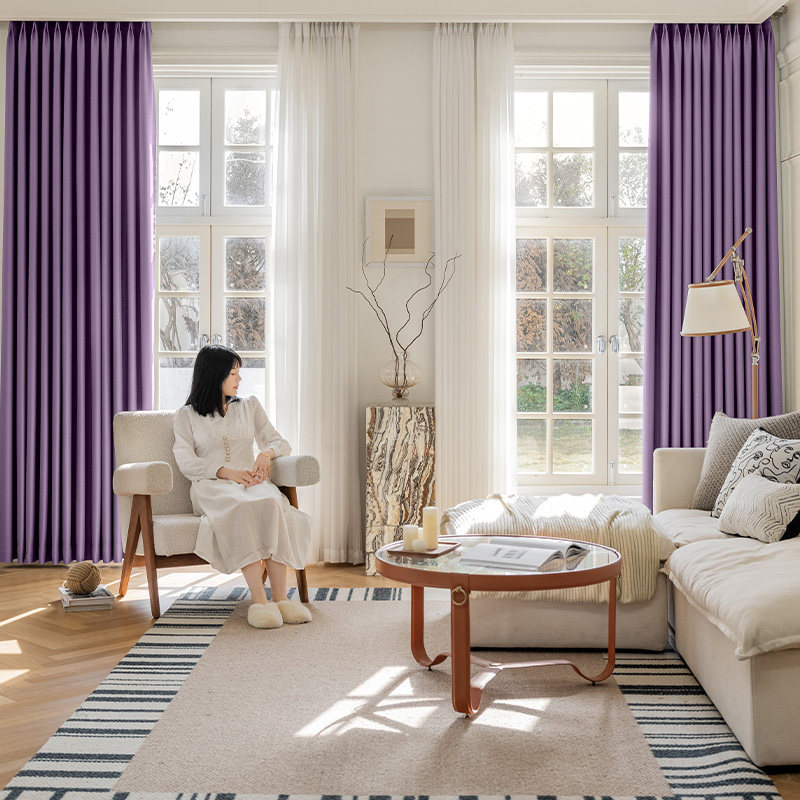 2026新款全遮光窗帘,采用高密度环保面料,实现99%以上遮光率,有效隔绝强光与紫外线,为卧室营造静谧舒适的睡眠环境。浅紫色柔和雅致,兼具时尚美感与温馨氛围,适配多种家居风格。面料具备优异隔热性能,夏季阻隔外界热量,冬季保温节能,实现四季舒适。内层添加遮光涂层,不透一丝光线,尤其适合对光线敏感人群。轨道顺滑、垂感佳,支持多种安装方式,易清洁打理。无论是遮光、防晒、隔热还是隐私保护,这款窗帘都能满足现代家庭对高品质生活的追求,是卧室升级的优选之选。