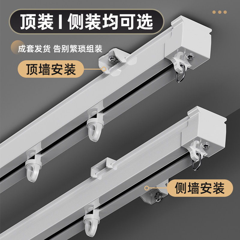 窗帘轨道顶装滑道超薄静音滑轮一整套滑轨卧室阳台窗帘杆隐形轨道