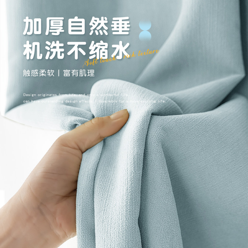 新款简约现代挂钩打孔式窗帘成品租房阳台飘窗卧室客厅半遮光窗帘