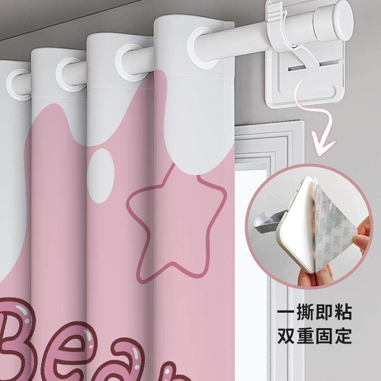 淘免打孔安装伸缩杆一整套小窗帘全遮光简易遮阳布2024新款防晒隔热
