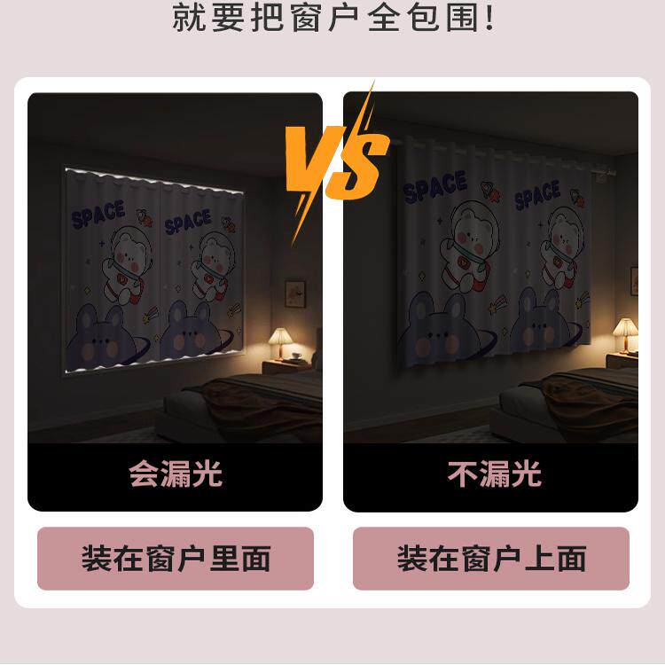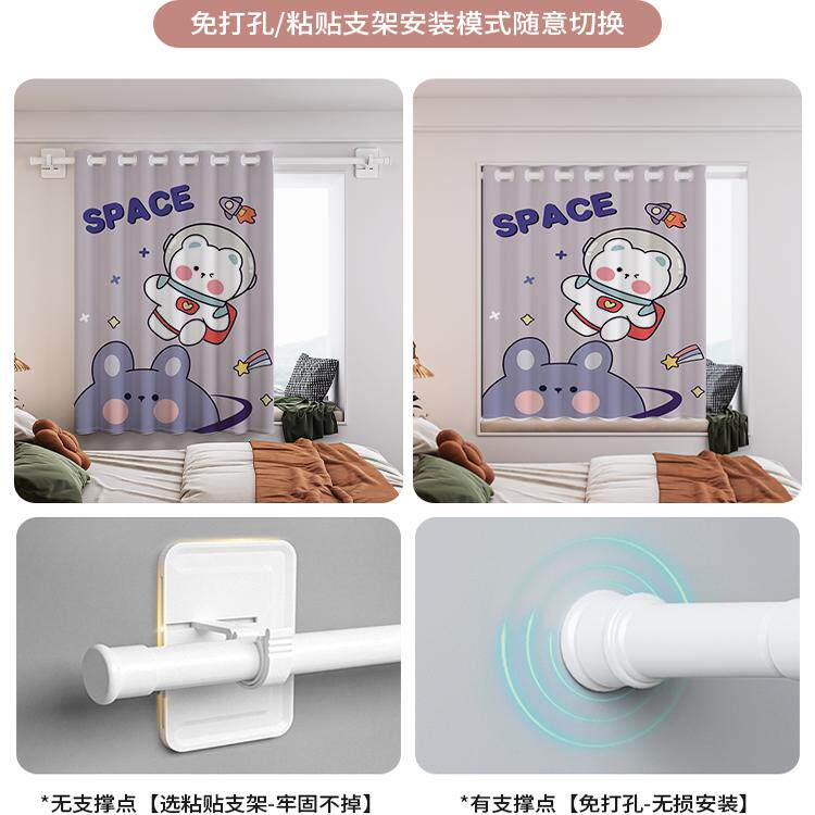 天猫儿童房小窗帘免打孔安装全遮光男女孩卧室飘窗遮阳短2023新款卡通