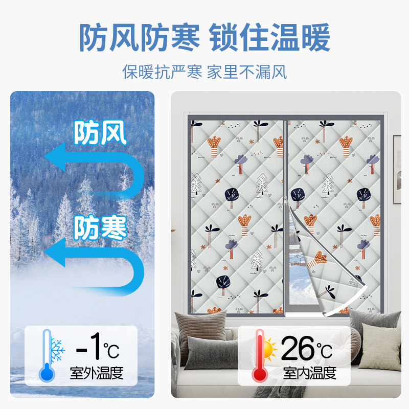 天猫冬季保暖棉窗帘家用保温隔断帘卧室防风飘窗帘子防冷气加棉可定制