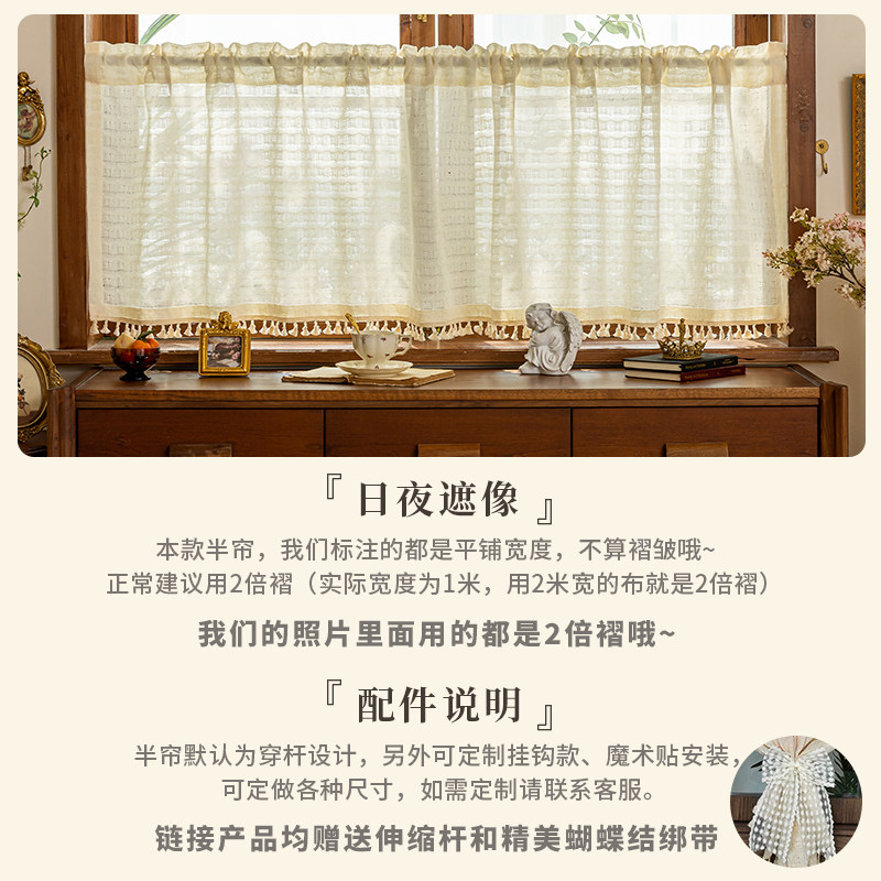 天猫法式复古窗帘纱帘田园风门帘半帘短帘子免打孔透光不透人卧室客厅