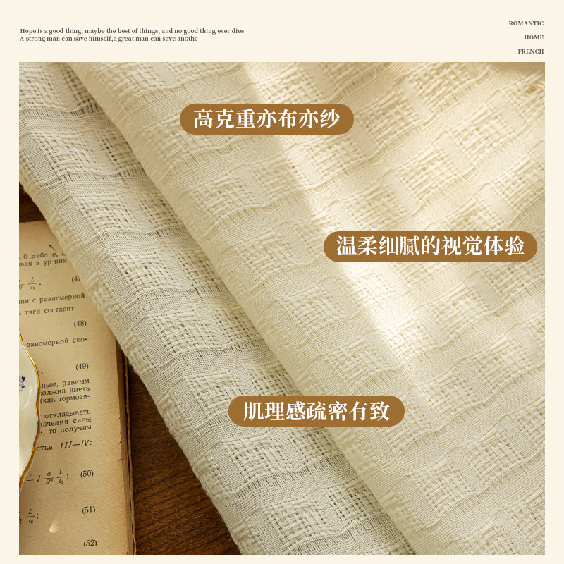 新款月枝影纱帘轻奢简约法式窗帘透光不透人遮光卧室客厅窗帘纱