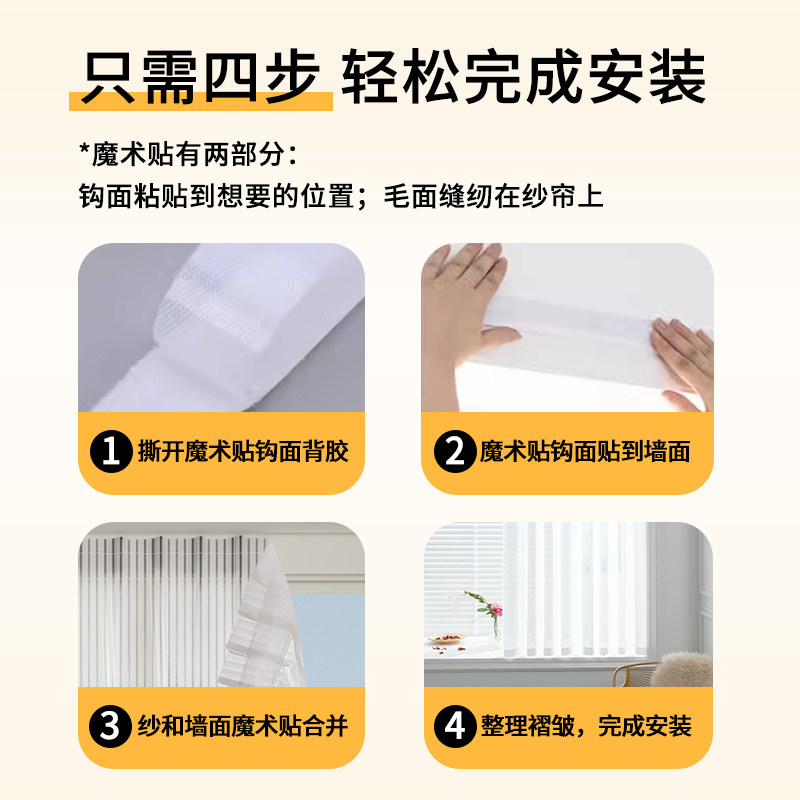 魔术贴百叶纱帘是一款实用又美观的遮光窗帘,采用高品质透光纱材质,既能柔化阳光、保护隐私,又让室内保持明亮通透。独特的百叶设计可调节光线角度,满足不同的遮阳需求,特别适合阳台、飘窗及出租屋使用。安装简便,无需打孔,直接粘贴魔术贴即可固定,不伤墙面,搬家也方便拆卸带走。兼具防晒、防紫外线功能,有效隔热降温,提升居住舒适度。无论是现代简约还是北欧风格装修,都能轻松搭配,是租房族和追求便捷生活人群的优选窗帘解决方案。