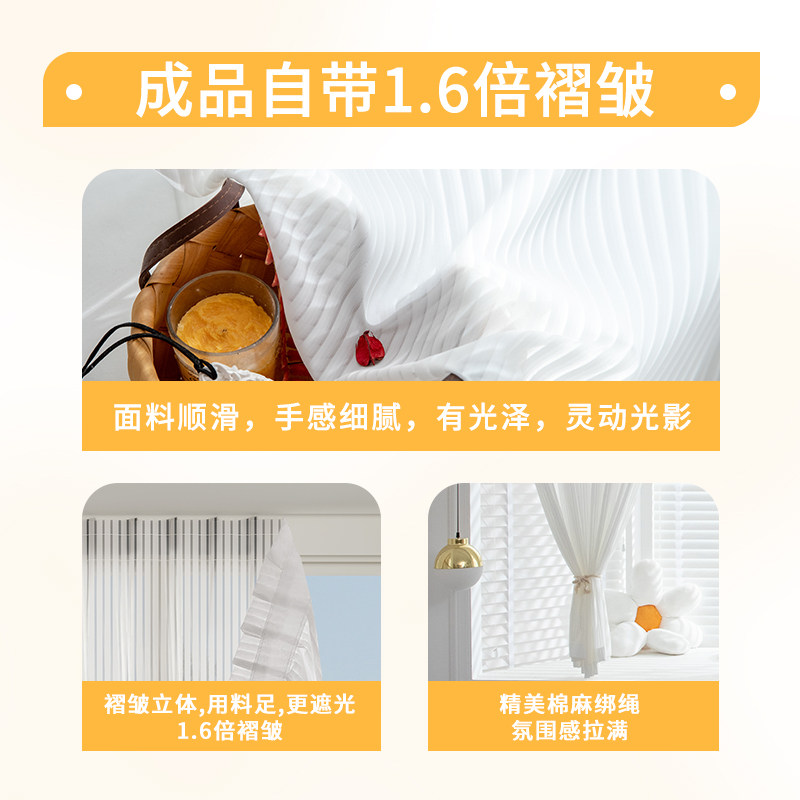 淘(全套送杆)半遮光简约窗帘成品短帘飘窗卧室出租房新款遮光布料