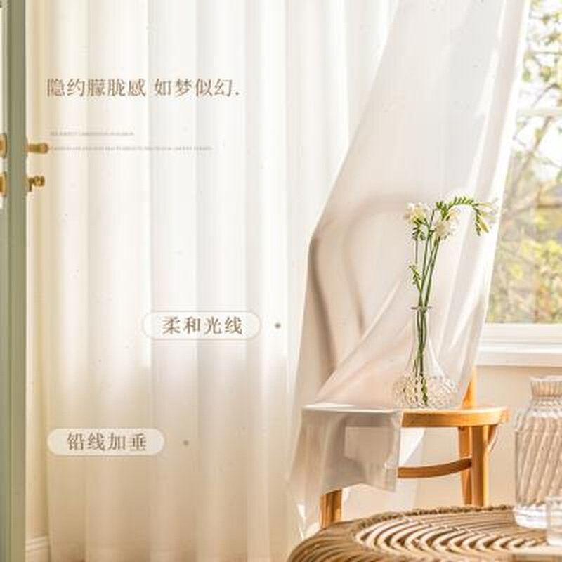 新款月枝影纱帘轻奢简约法式窗帘透光不透人遮光卧室客厅窗帘纱