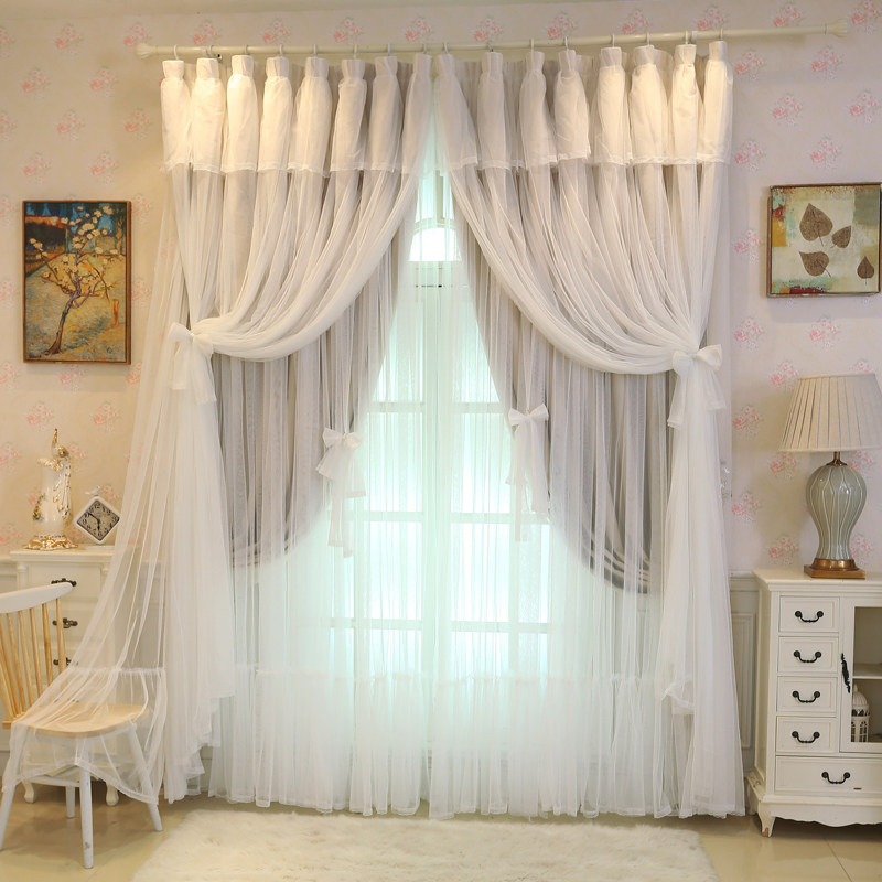 淘宝简约现代婚房公主风飘窗窗帘卧室少女纱帘清新甜美全遮光网红窗帘