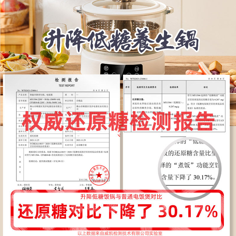 德国智能升降低糖电饭煲,采用先进的一煮二沥三蒸技术,实现米汤自动分离,有效降低米饭中的还原糖含量,助力健康饮食。全自动智能操控,一键启动即可完成煮、沥、蒸全过程,操作简单便捷。内胆采用优质不粘涂层,受热均匀,米饭香甜松软且不粘锅。升降低糖设计特别适合糖尿病患者及减脂人群使用。整机通过德国品质认证,安全可靠,是追求健康生活的理想厨房电器。正品保障,售后无忧,让您安心享受低糖美味米饭。