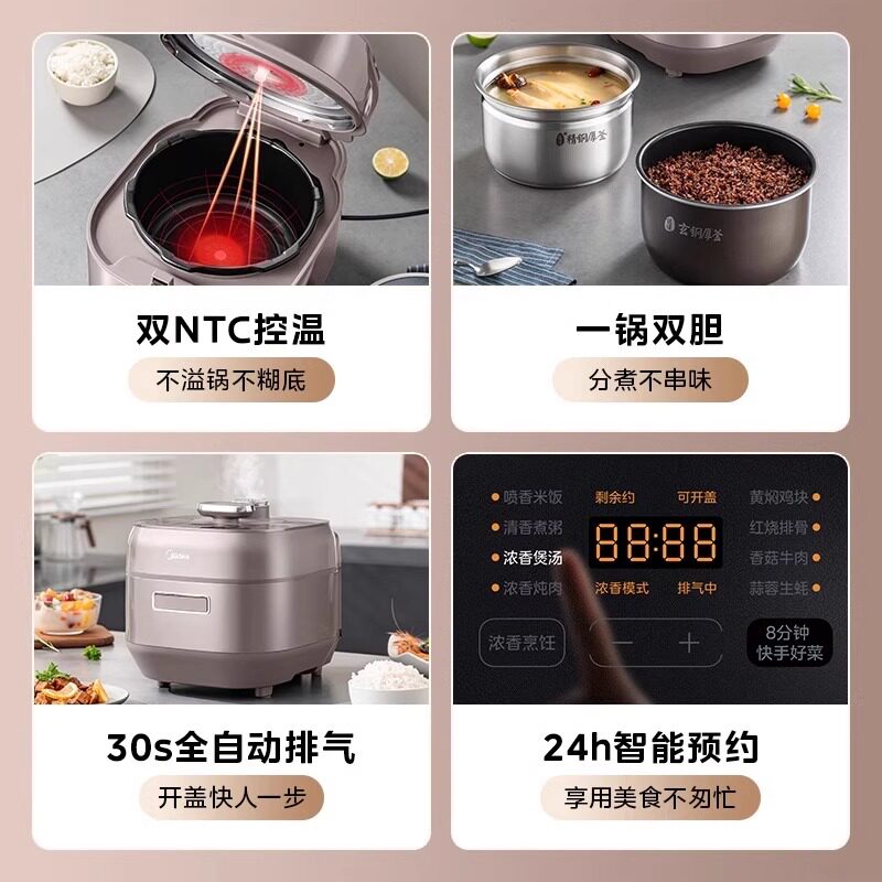 天猫美的电压力锅家用0涂层不锈钢内胆5L大容量高压锅IH电饭煲3-4人