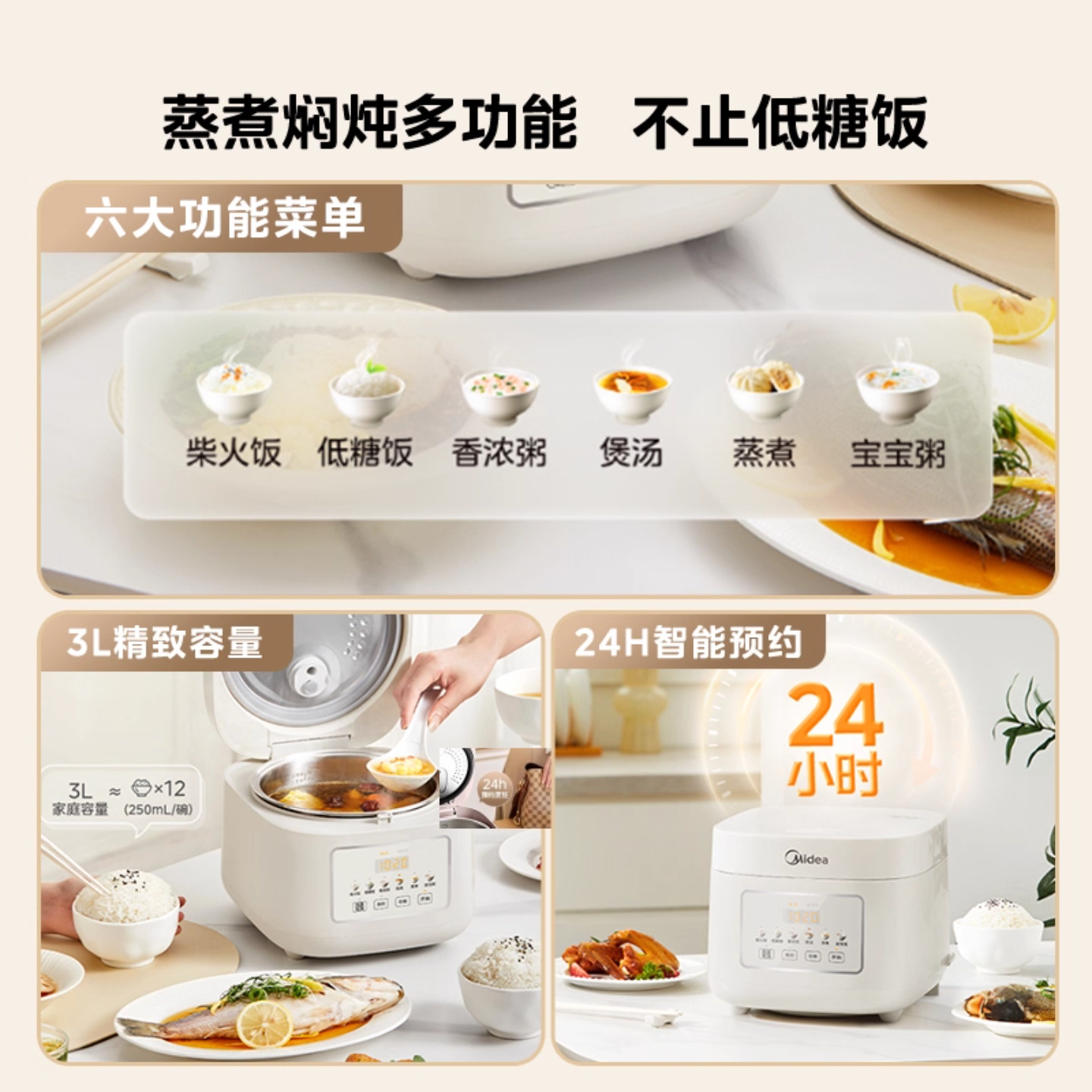 天猫美的低糖电饭煲家用0涂层316L内胆小型米汤分离滤沥控糖烹饪机