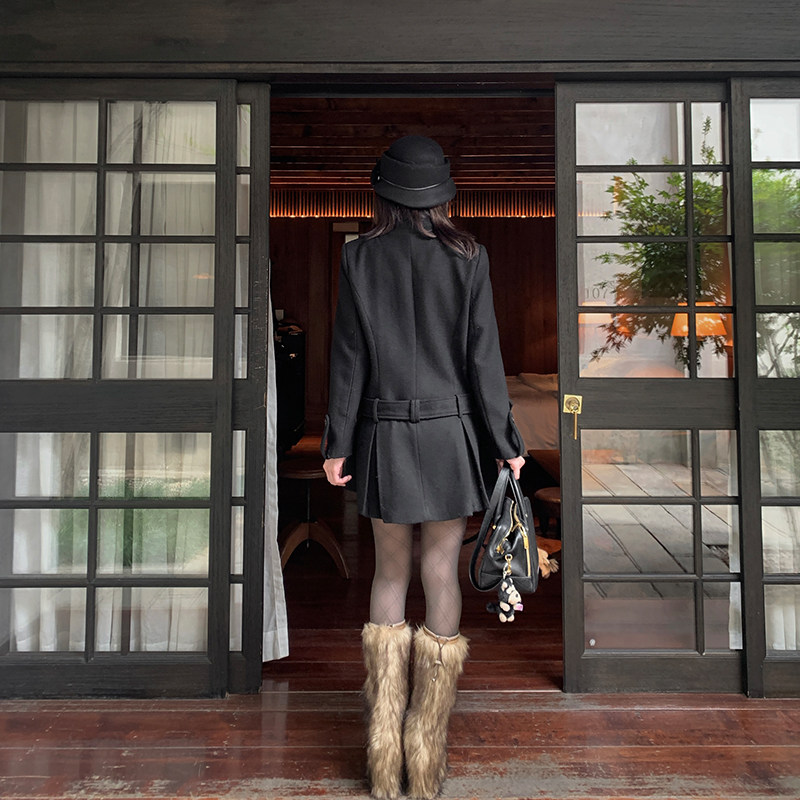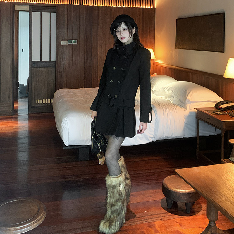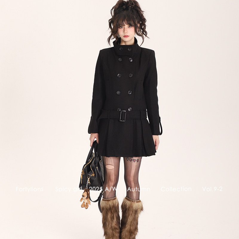 Fortylions双排扣黑色羊毛大衣,专为小个子女性打造的秋冬中长款毛呢风衣外套。精选优质羊毛面料,质感挺括、保暖性佳,经典黑色百搭耐看,轻松驾驭职场与日常穿搭。双排扣设计复古优雅,修饰身形线条,中长版型恰到好处地拉长腿部比例,兼顾风度与温度。利落剪裁贴合亚洲女性身材,袖口与下摆细节精致,彰显品质感。无论是搭配裙装或裤装,都能展现知性干练又不失柔美的气质,是秋冬衣橱不可或缺的时尚单品,为小个子女生带来自信与优雅的完美平衡。