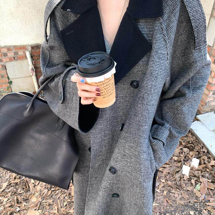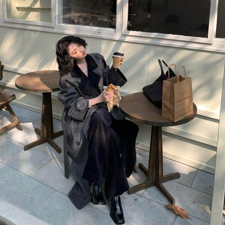 文艺休闲风衣中长款秋冬装韩版新款宽松气质流行呢子外套黑色