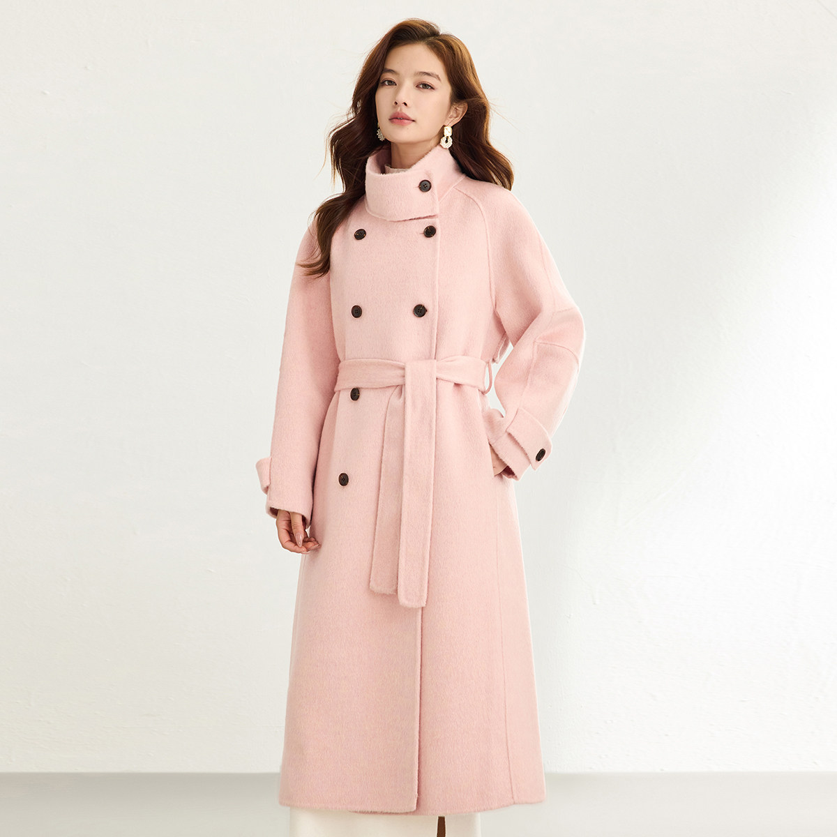 SerinaBlue 2026春季新款立领双排扣绵羊毛大衣,以高级质感诠释优雅与力量。精选优质绵羊毛面料,触感柔软,保暖轻盈,垂坠感佳,彰显低调奢华。立领设计利落有型,搭配经典双排扣门襟,勾勒出挺括廓形,兼具复古韵味与现代气场。剪裁修身却不束缚,适合多种身形,轻松打造都市女性干练又不失温柔的形象。无论是通勤还是休闲场合,都能展现从容自信的风度。SerinaBlue以匠心工艺与时尚设计,为春日穿搭注入高级感,是追求品质与风格女性的理想之选。