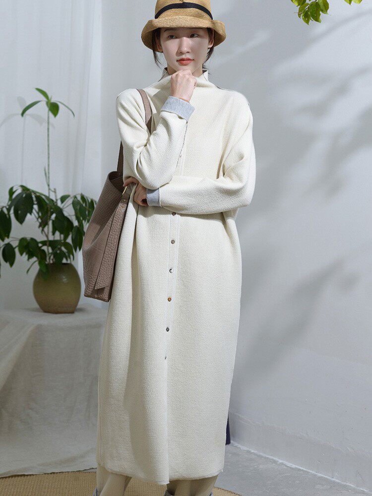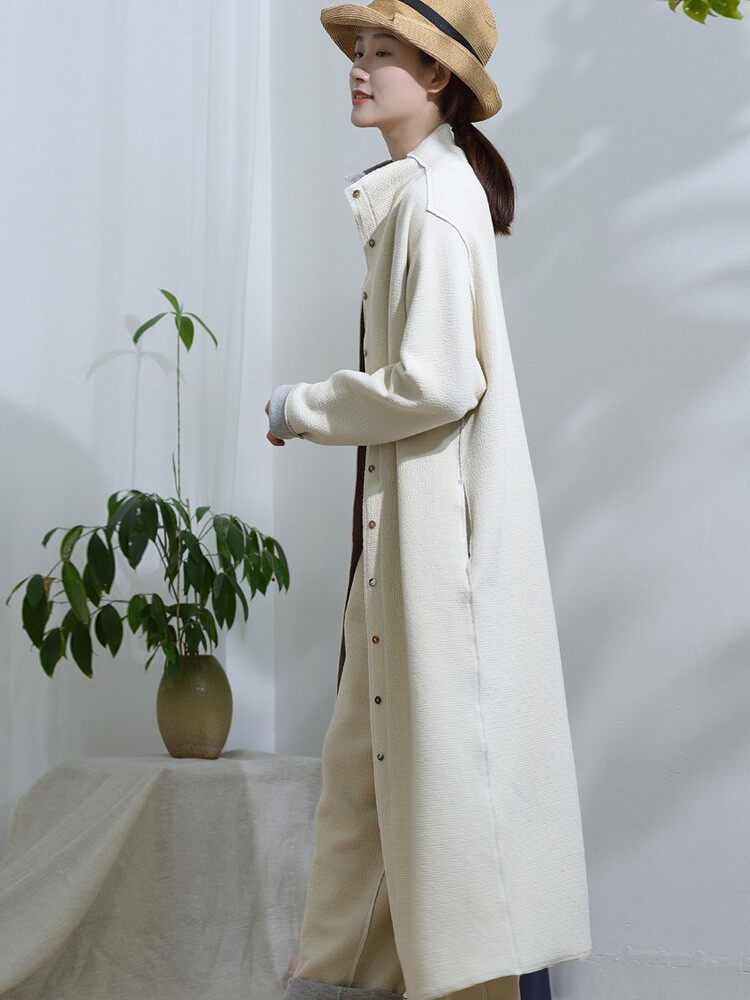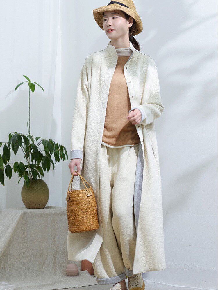 淘宝双层空气层针织超弹茧型长款外套女秋季文艺大衣气质连领宽松风衣
