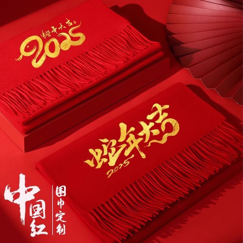 淘年会围巾定制印字logo中国大红围巾同学聚会广告活动公.司开业庆