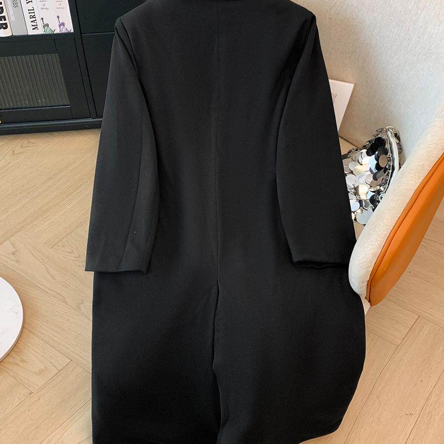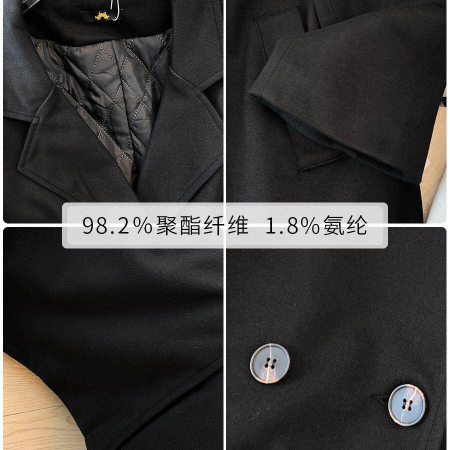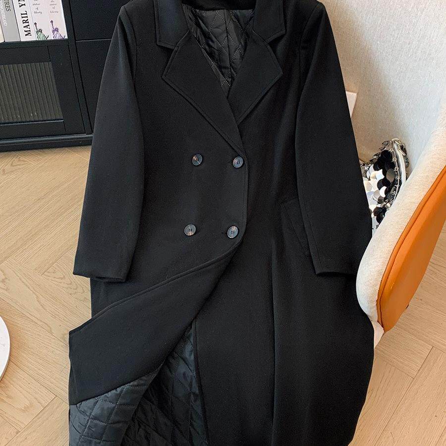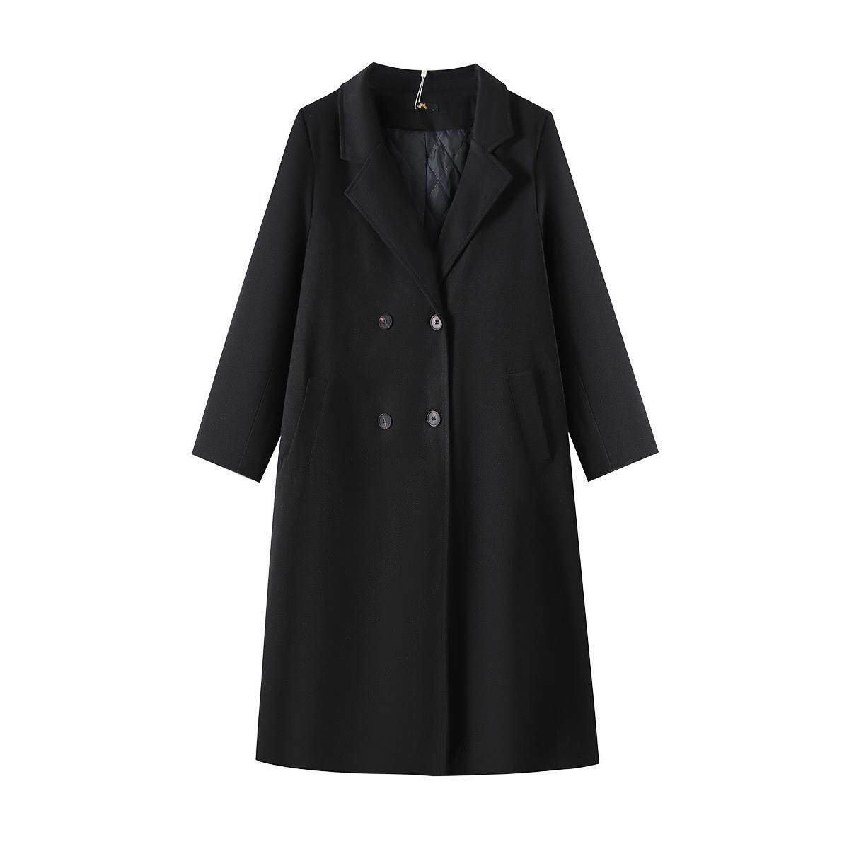 毛呢外套女秋冬中长款双排扣夹棉西装领大衣过膝大码慵懒风衣宽松