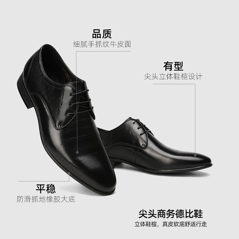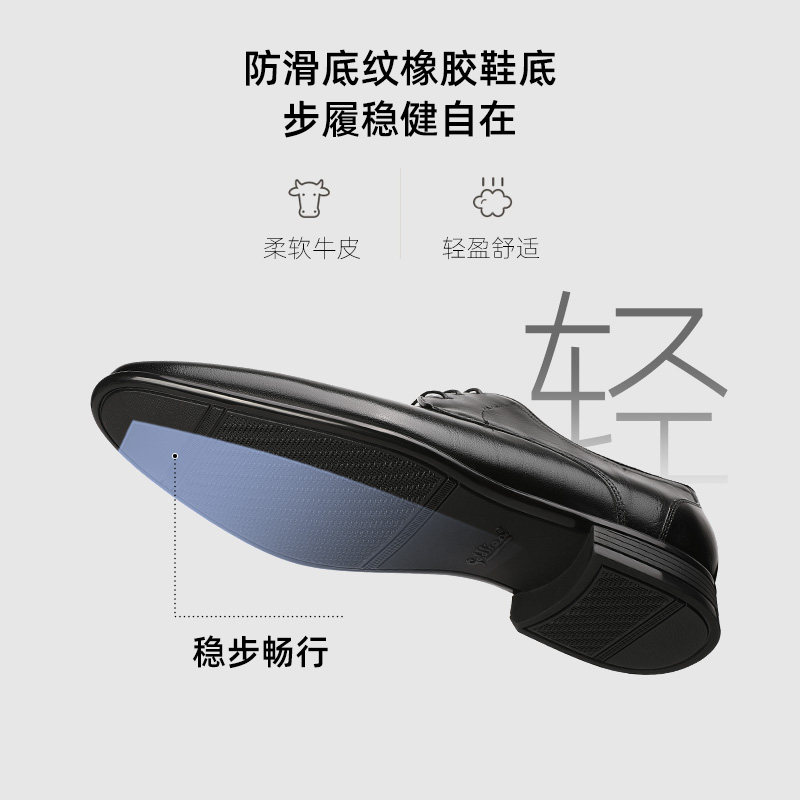 冬季商务正装皮鞋男英伦风真皮休闲软底舒适上班内增高新郎结婚鞋