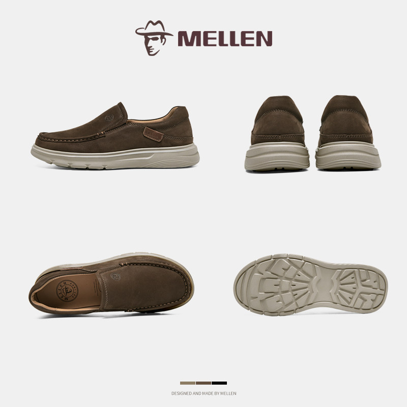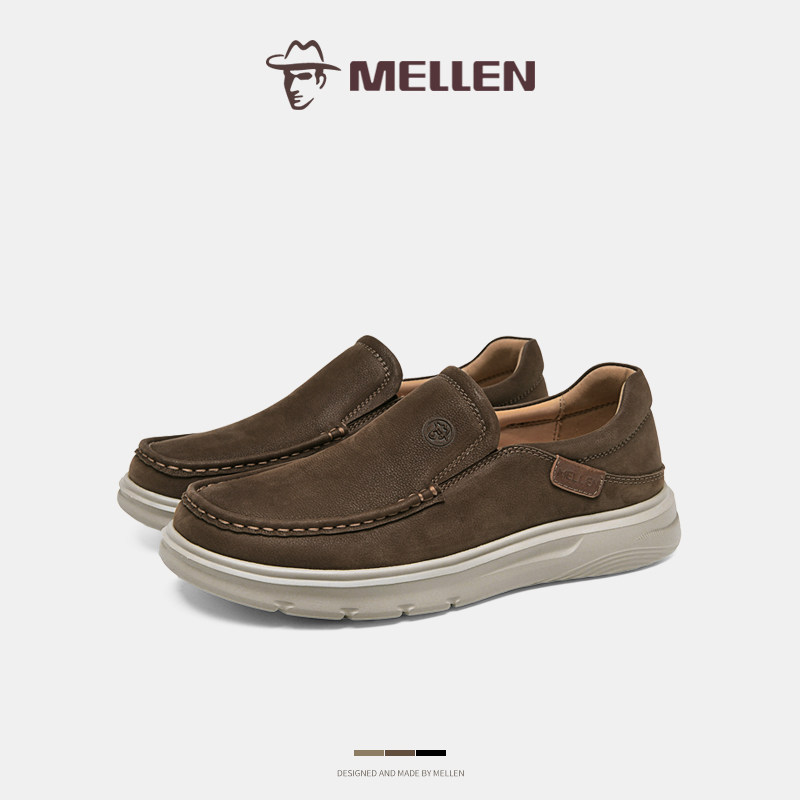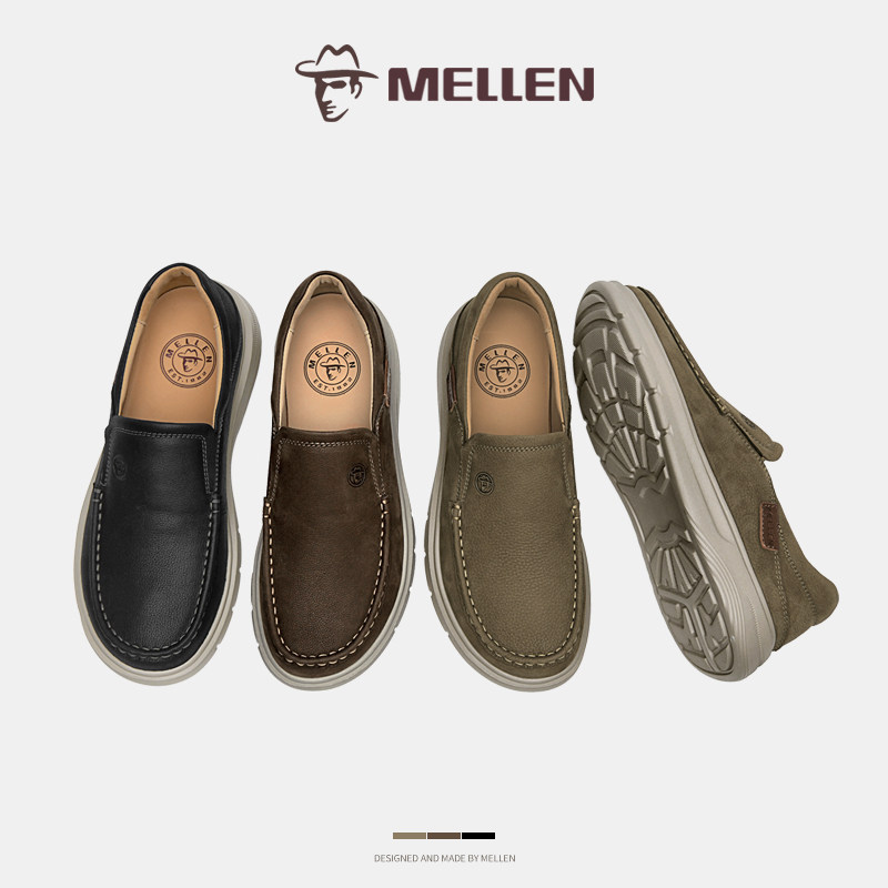 MELLEN名郎全新推出男士真皮软底一脚蹬乐福鞋,融合经典设计与现代舒适理念。精选优质头层牛皮,质感细腻,柔软透气,久穿不闷脚。一体式无带设计,穿脱便捷,适合快节奏生活。内置高弹缓震鞋垫,搭配轻质防滑橡胶大底,行走轻盈舒适,久站不累。简约百搭造型,轻松驾驭商务休闲、日常通勤等多种场合。无论是搭配西裤、休闲裤还是牛仔裤,都能展现男士儒雅气质与时尚品味。MELLEN名郎专注细节工艺,匠心打造每一双鞋,为现代男士提供兼具品质与舒适的理想之选。