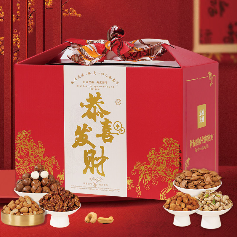 天猫2026年货节轻奢坚果大礼包零食干果组合礼品置办送礼走亲戚新礼盒